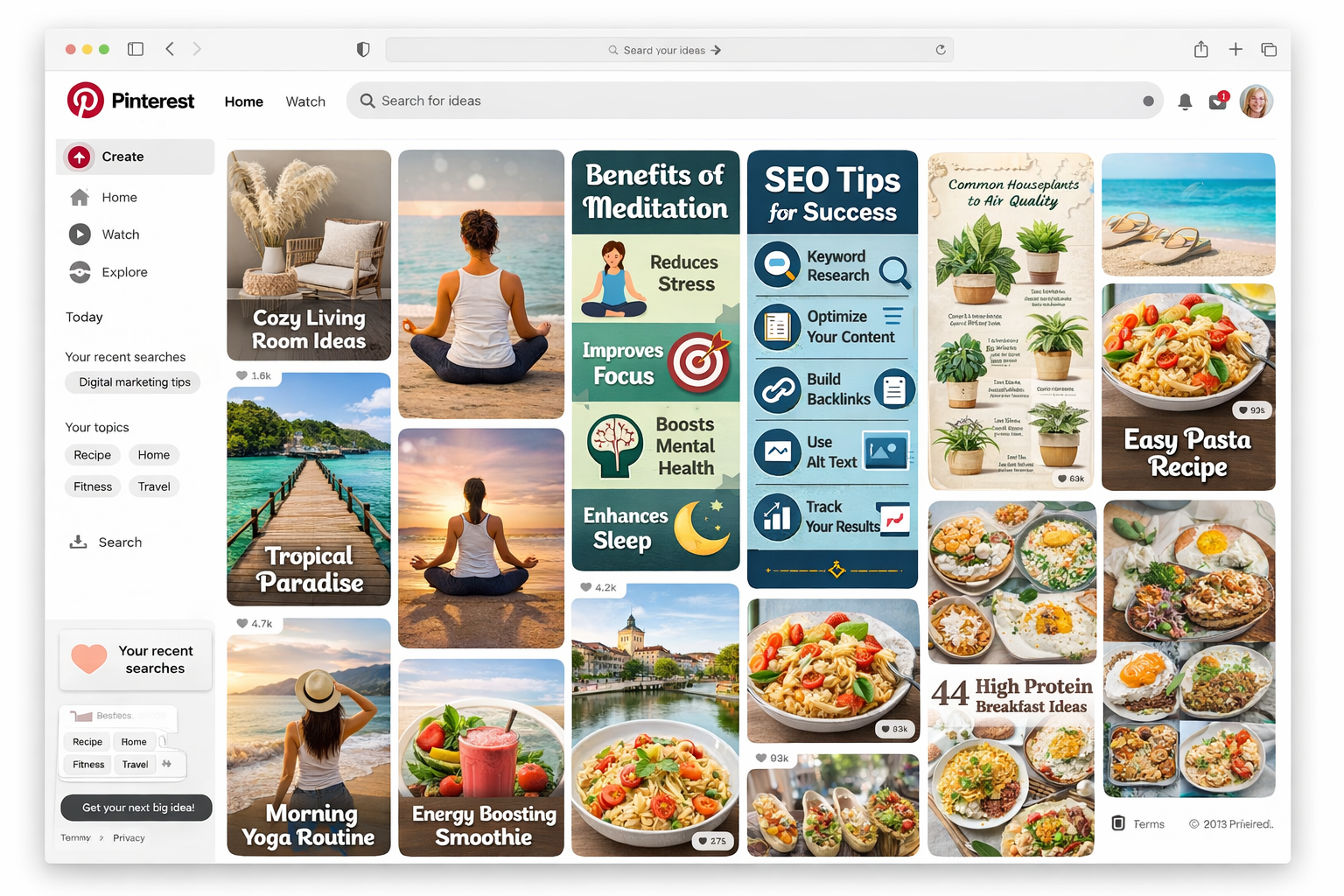 This discovery system gives new creators a huge advantage. Even if you are starting a Pinterest account from scratch with zero followers, your content still has the potential to reach thousands of users. As long as the pin provides useful information and aligns with what people are searching for, Pinterest can recommend it to a relevant audience.