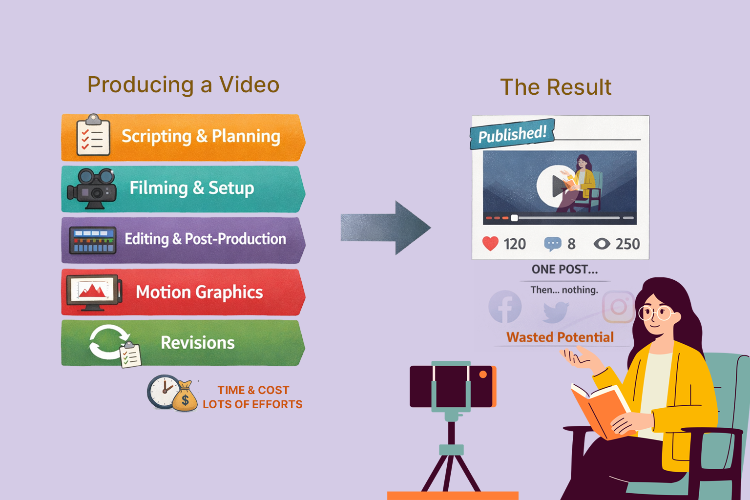 In most cases, the problem isn’t the quality of the video—it’s the strategy behind it. A one-and-done approach kills ROI. Once the post stops getting traction, the content quietly fades away, even though it’s still relevant and valuable.