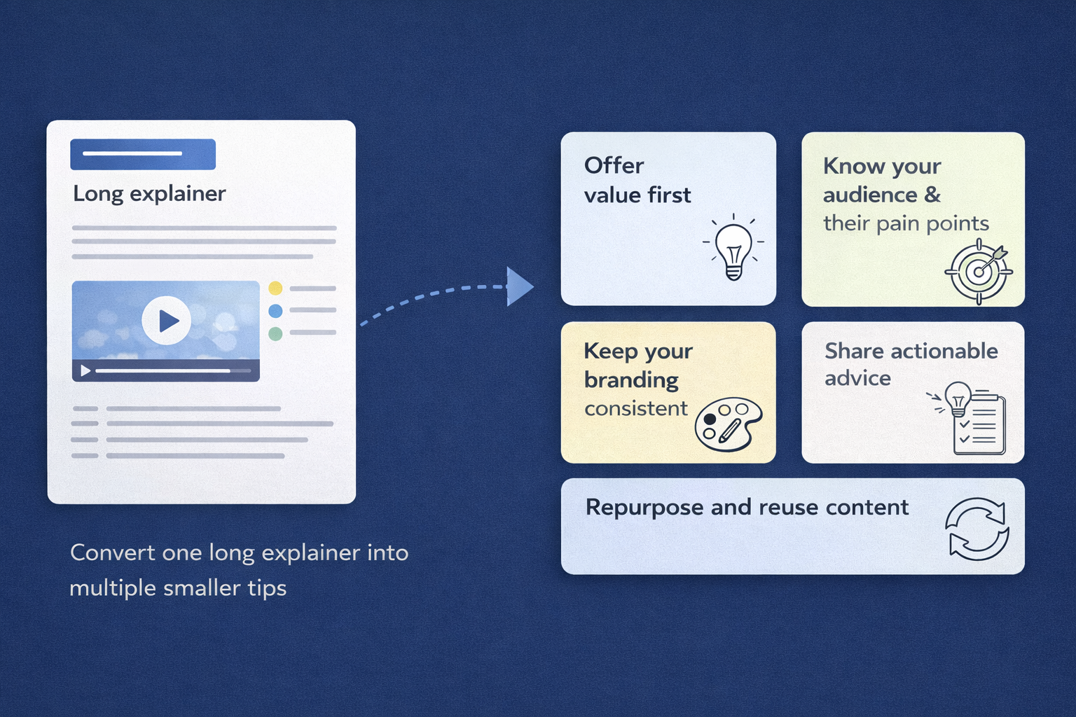 Instead of asking viewers to absorb everything at once, you can separate one explanation into multiple focused pieces. A single concept becomes one tip. A longer walkthrough becomes a short explainer. One important takeaway becomes a bite-sized insight that’s easy to consume and remember. Each piece delivers value without demanding too much attention.