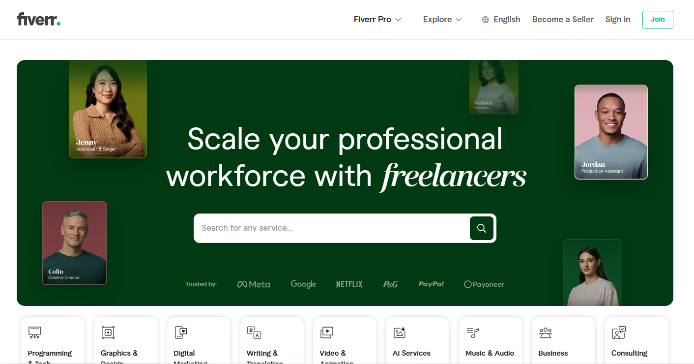 Fiverr is an online marketplace that offers a vast range of video editing services from freelance professionals around the world. It allows users to explore a variety of editing styles, from basic cuts to advanced animations, with customizable packages suited for different budgets and project requirements. Best for businesses, creators, and individuals, Fiverr’s easy-to-use platform lets clients quickly find and hire video editors based on their specific needs. With its transparent pricing and secure payment system, Fiverr provides an accessible solution for high-quality, affordable video editing services.